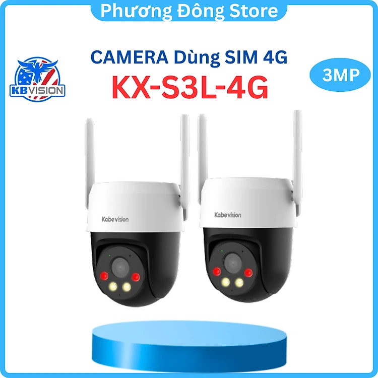 Camera KBVISION KX-S3L-4G dùng SIM 4G quay quét 3MP, đèn kép 30m, báo động đèn/còi, đàm thoại 2 chiều - Hàng chính hãng