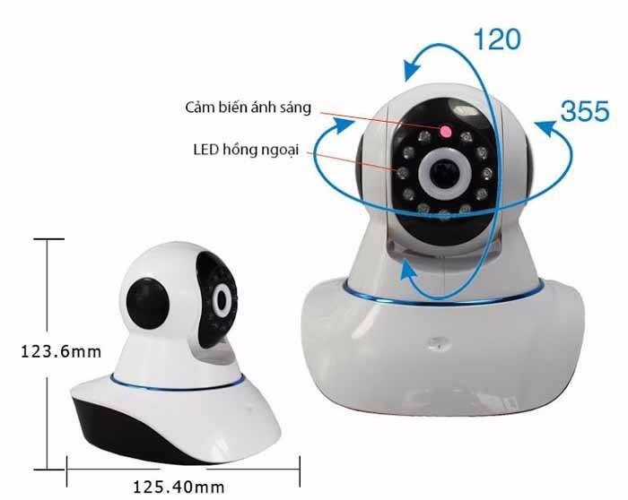 Góc quay: góc sang 355 độ, góc lên xuống 120 độ