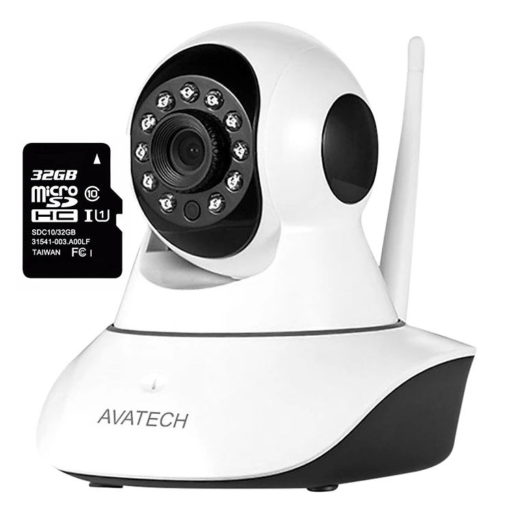 Bộ sản phẩm camera quan sát IP Wi-Fi AVATech 6300B 1.3 + thẻ nhớ Micro SD 32GB là lựa chọn thích hợp cho gia đình khi muốn trang bị hệ thống camera quan sát cho căn hộ của mình.