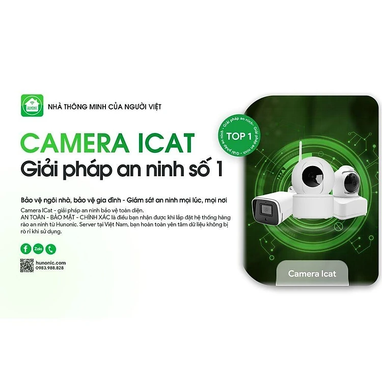 Camera Wifi Hunonic Icat 1080P Xoay 360 Độ, Theo Dõi Chuyển Động, Đàm Thoại 2 Chiều - Hàng Chính Hãng, Bảo Hành 1 Đổi 1.