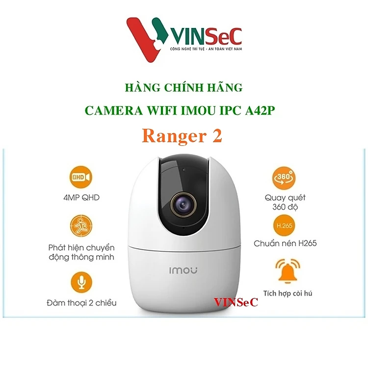 Camera Wifi IMOU IPC-A42P 4.0MP, cảnh báo chuyển động, hồng ngoại 10m, tính năng Wifi - Hàng Chính Hãng