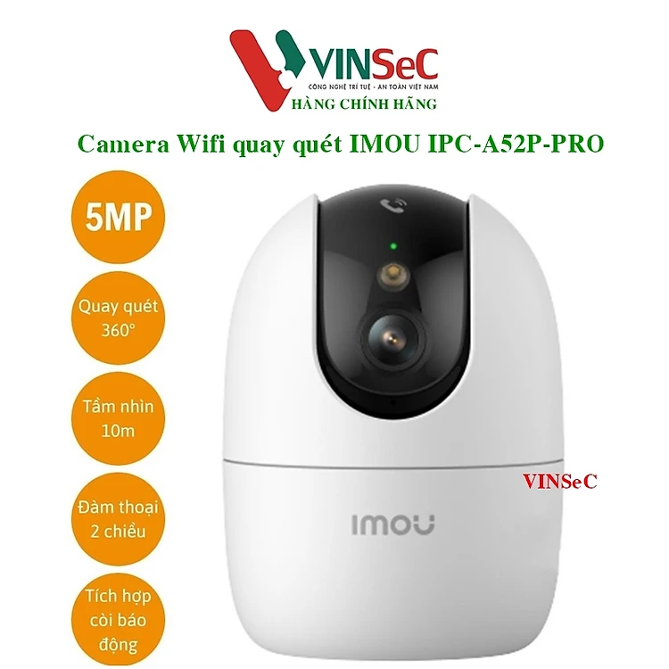 Camera Wifi IMOU IPC-A52P-Pro ( 5.Megapixel ), Đàm thoại 2 chiều, Xoay 360 độ, Wifi 6, Đèn & Còi - Tích hợp nút gọi 1 chạm - Hàng Chính Hãng