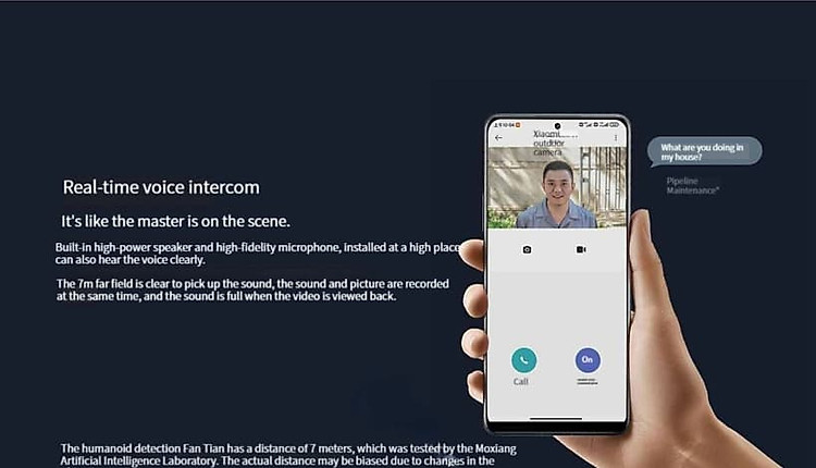 Khi phát hiện thấy kẻ xâm nhập, âm thanh kèm đèn nháy tần số cao sẽ được camera tự động kích hoạt báo động. Nhờ vậy có thể đe dọa và xua đuổi những vị khách không mời, buộc họ phải dời đi. Ngoài ra, những hình ảnh về đối tượng sẽ được gửi thông báo kịp thời về điện thoại thông minh kết nối với camera. Với việc trang bị tích hợp loa công suất lớn và micro, nó cho phép bạn có thể nói chuyện với khách một cách rõ ràng.