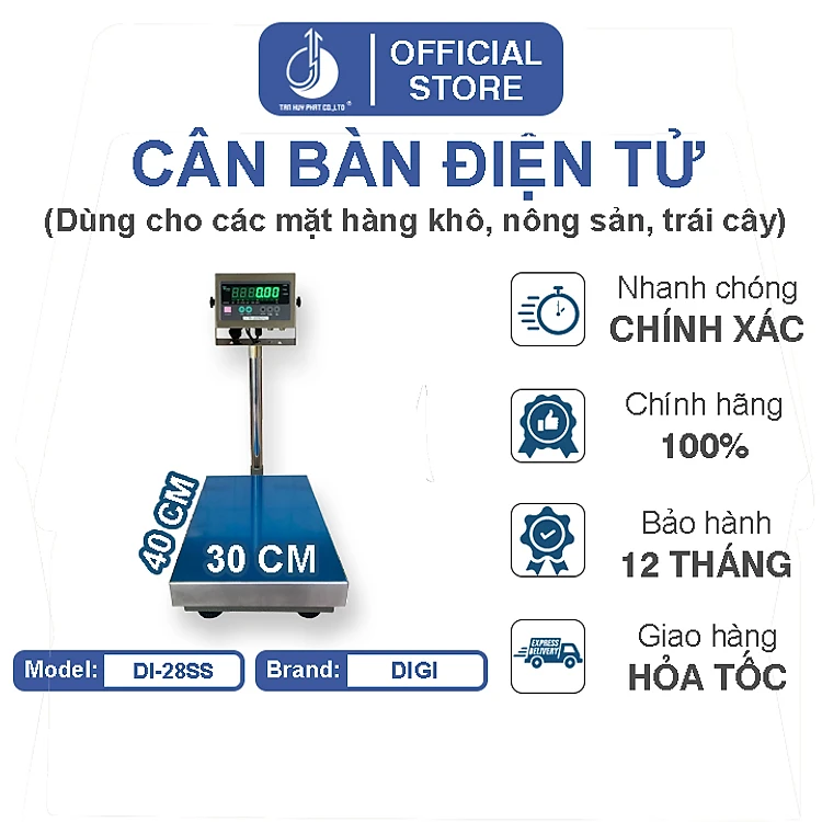 Cân Bàn Điện Tử DI28SS - Mặt Bàn Cân 300x400MM - Đầu Chống Nước