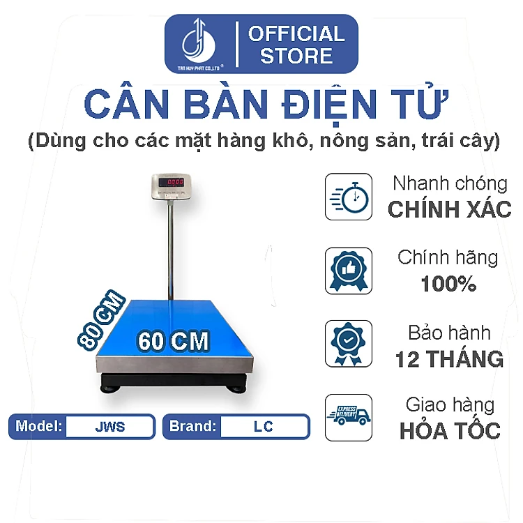 Cân Bàn Điện Tử JWS - Mặt Bàn Cân 600x800MM - Đầu Chỉ Thị Chống Nước