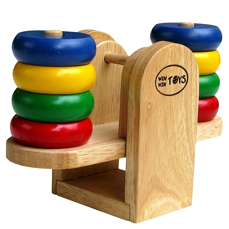 Trò chơi Cân bập bênh Winwintoys được thiết kế đối xứng với nhau bằng những vòng tròn gỗ nhiều màu sắc sinh động.