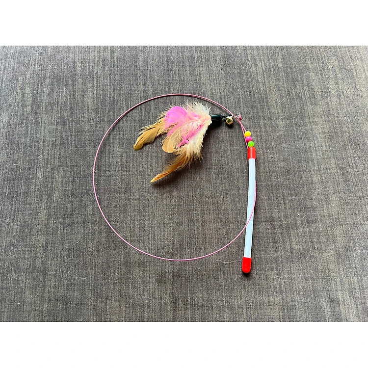 CẦN CÂU DÂY THÉP GẮN LÔNG VŨ CÓ CHUÔNG CHO MÈO