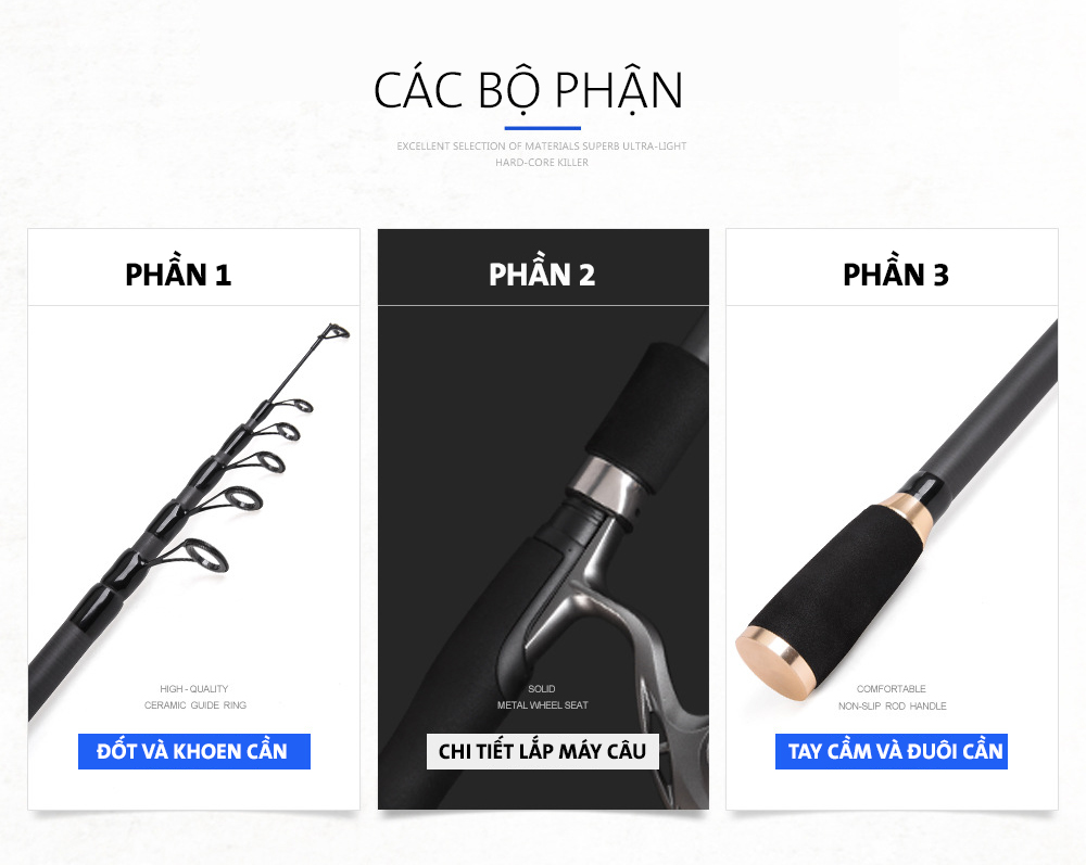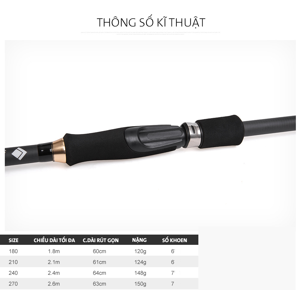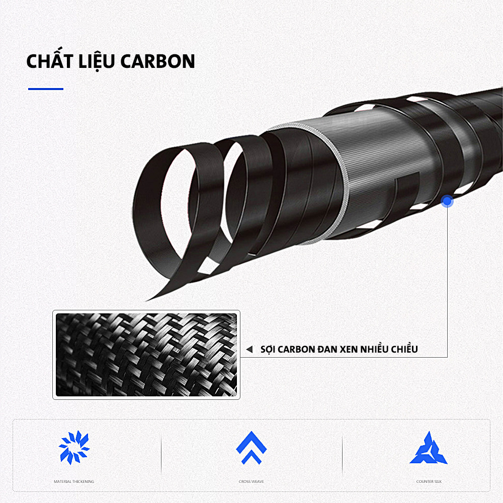 Được làm hoàn toàn từ chất liệu carbon cao cấp, cho người dùng cảm giác siêu nhẹ, phù hợp với mọi lứa tuổi. Đây là 1 sản phẩm rất tốt để sử dụng đánh bắt cá gần bờ, ao hồ, hay mang đi dã ngoại, đi du lịch xa do đặc thù siêu nhẹ của nó.