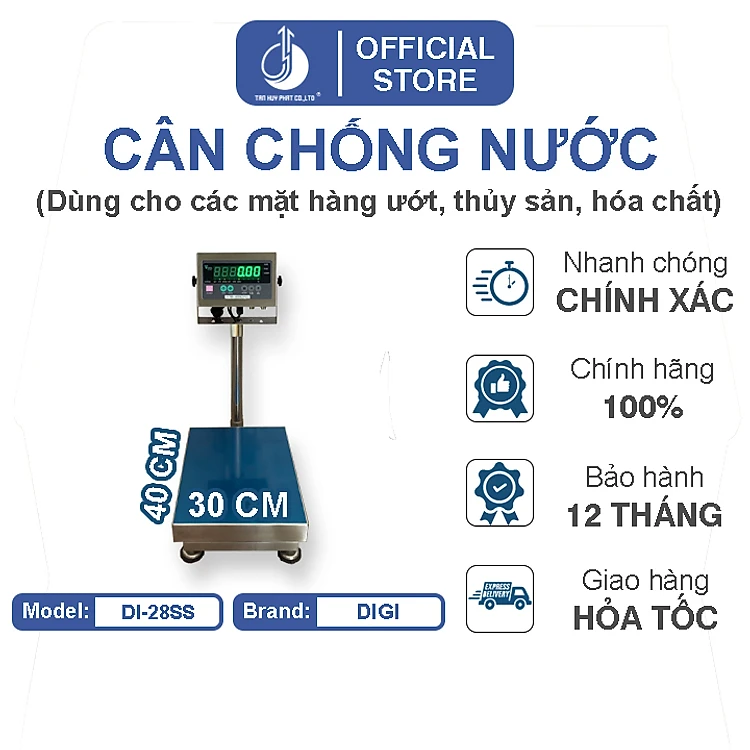 Cân Điện Tử Chống Nước DI28SS - Mặt Bàn Cân Inox 300x400MM