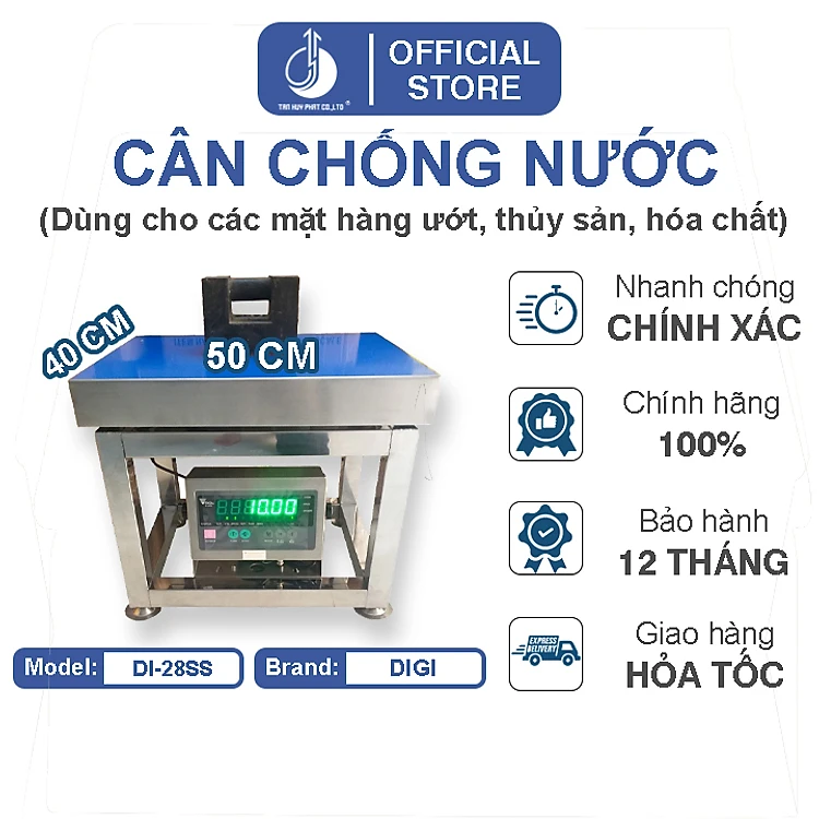 Cân Điện Tử Chống Nước DI28SS - Mặt Bàn Cân Inox 400x500MM