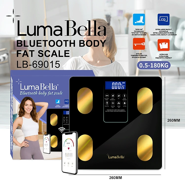 Cân điện tử sức khỏe thông minh Lumabella LB69015, LB69024 kết nối Bluetooth đo các chỉ số cơ thể, phân tích cân - DELIYA HÀNG CHÍNH HÃNG