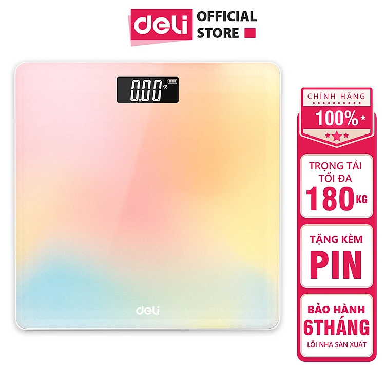 Cân Điện Tử Sức Khoẻ Thông Minh Mặt Vuông Kính Cường Lực Chịu Lực 180Kg Deli - Phù Hợp Gia Đình Trường Học - Nhiều Màu Sắc - Hàng Chính Hãng - E86120