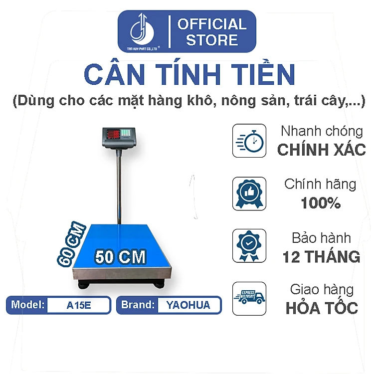 Cân Điện Tử Tính Tiền A15E - Mặt Bàn Cân 500X600MM