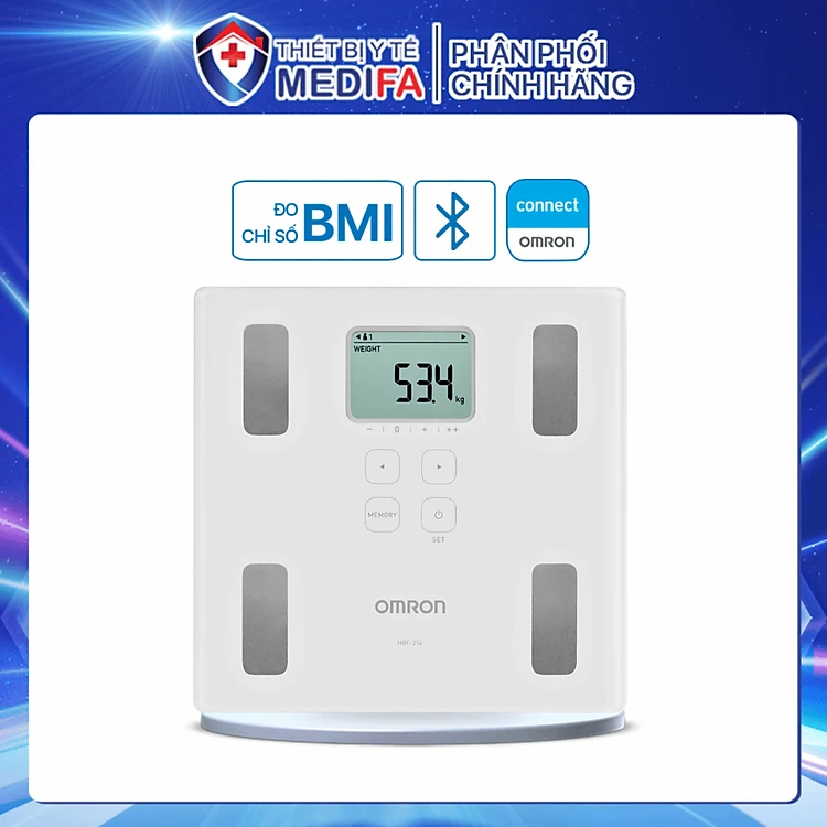 Cân Đo Lượng Mỡ Cơ Thể Điện Tử Omron HBF-214 ( Thương Hiệu Omron Nhật Bản )