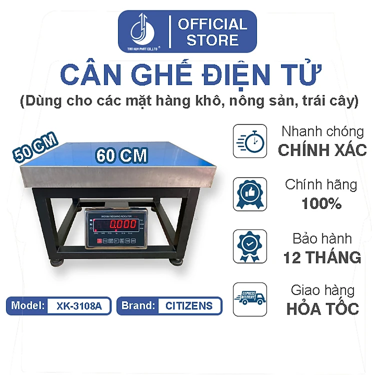 Cân Ghế Điện Tử XK3108A - Mặt Bàn Cân 500x600MM - Đầu Chống Nước