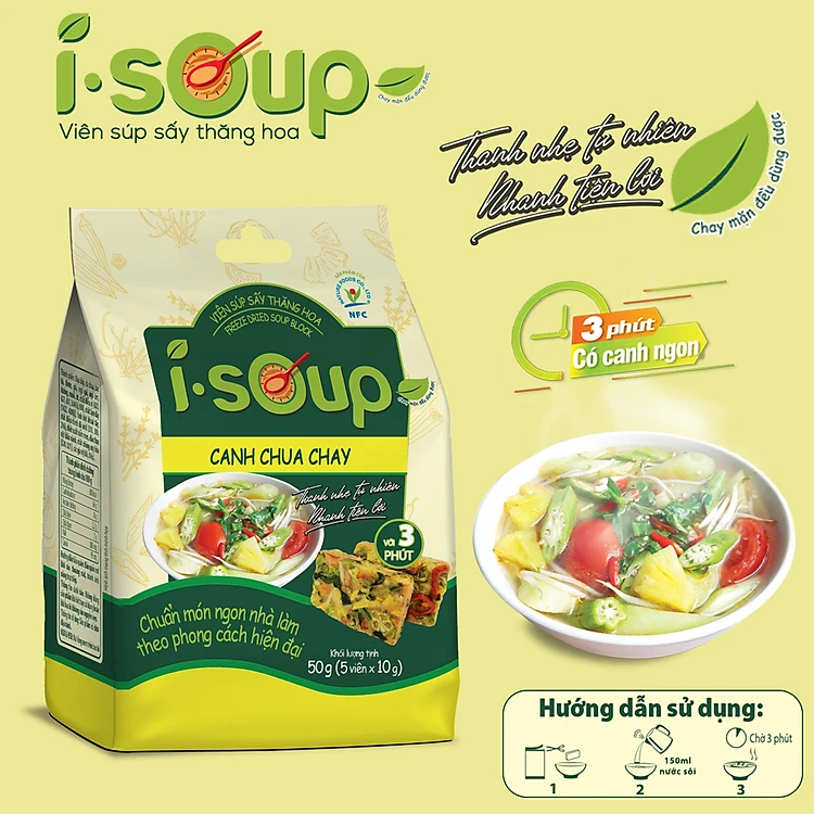 Canh Chua Chay I-Soup 50g (túi 05 viên)- Viên Súp Chay_ Sấy Thăng Hoa