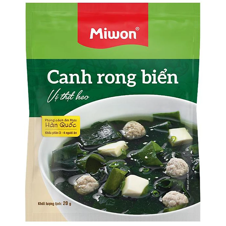 - Canh Rong Biển Vị Thịt Heo Miwon 20g là thức ăn rất giàu dưỡng chất, tốt cho hệ tiêu hóa, giàu chất dinh dưỡng, ít calo, cải thiện sức khỏe tim mạch.