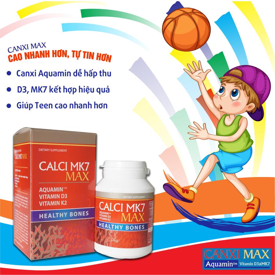 Cha mẹ hãy tranh thủ nắm bắt cơ hội vàng này, đừng để thiếu canxi và dưỡng chất khiến con thấp còi, thiệt thòi chiều cao. Bổ sung ngay Canxi Mk7 Max để cung cấp canxi và các dưỡng chất cần thiết giúp con phát triển chiều cao tối đa.