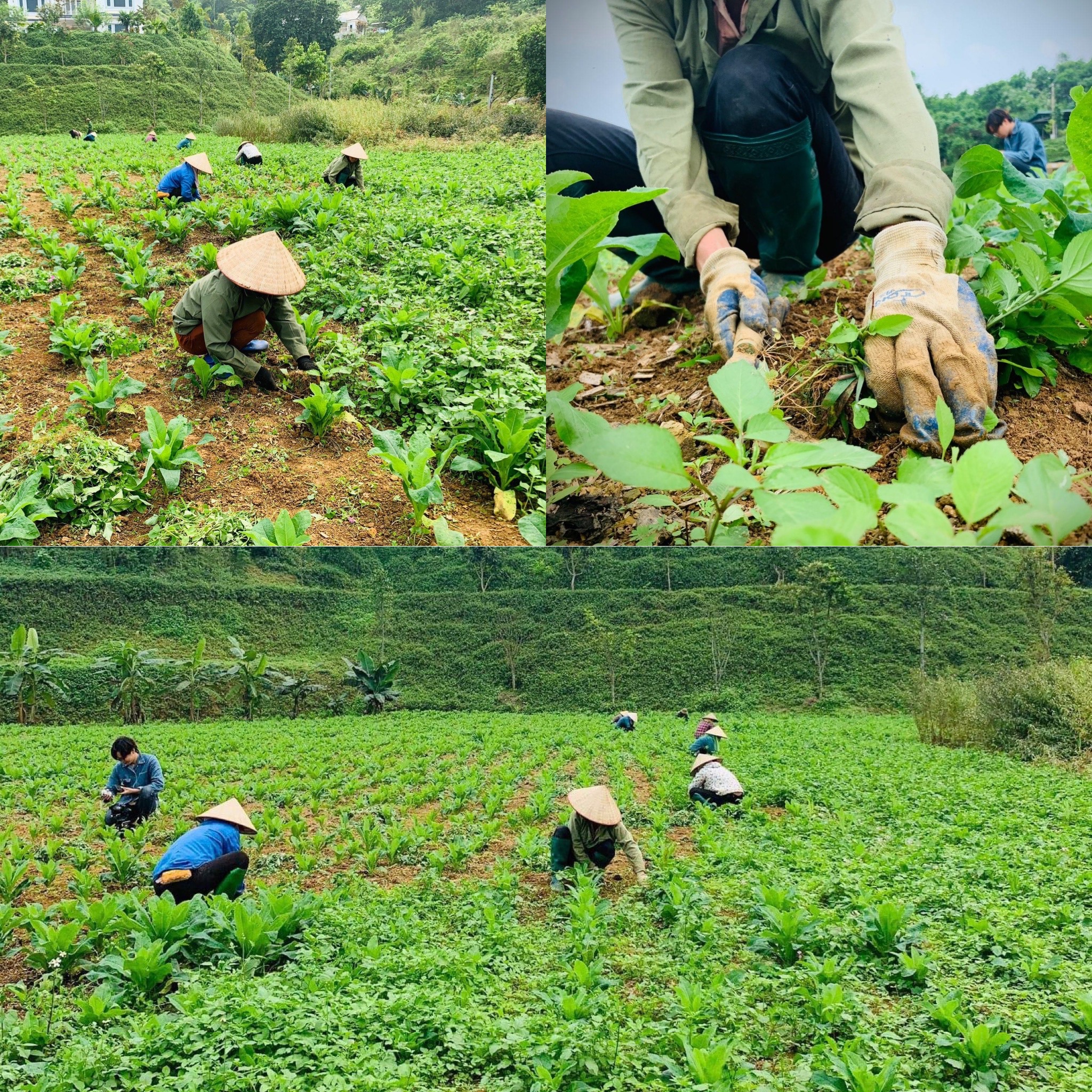 Hình ảnh các cô công nhận làm cỏ bằng tay, không phun thuốc diệt cỏ.