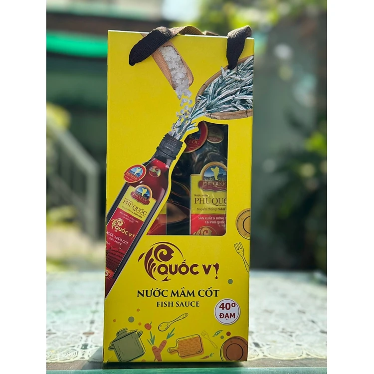 Hộp Tết 2 Chai Nước Mắm Cốt Phú Quốc Quốc Vị Độ Đạm 40N Chai Thủy Tinh 520ml Cá Cơm