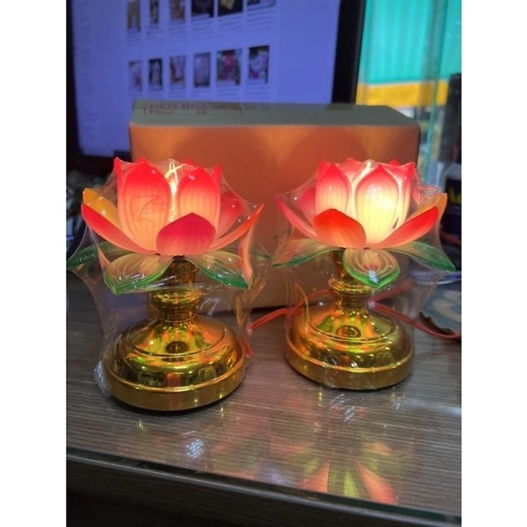 Cặp Đèn Hoa Sen Thờ Cúng – Đế Vững Chắc, Ánh Sáng Trang Nghiêm Cho Bàn Thờ