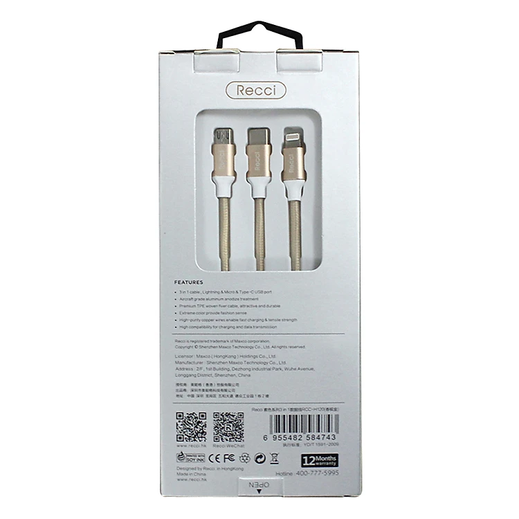 Cáp 3 in 1 Recci Delicate - Hàng Chính Hãng