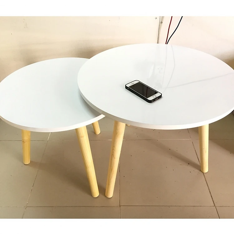 - Cặp bàn tròn trắng sofa phòng khách 60-50