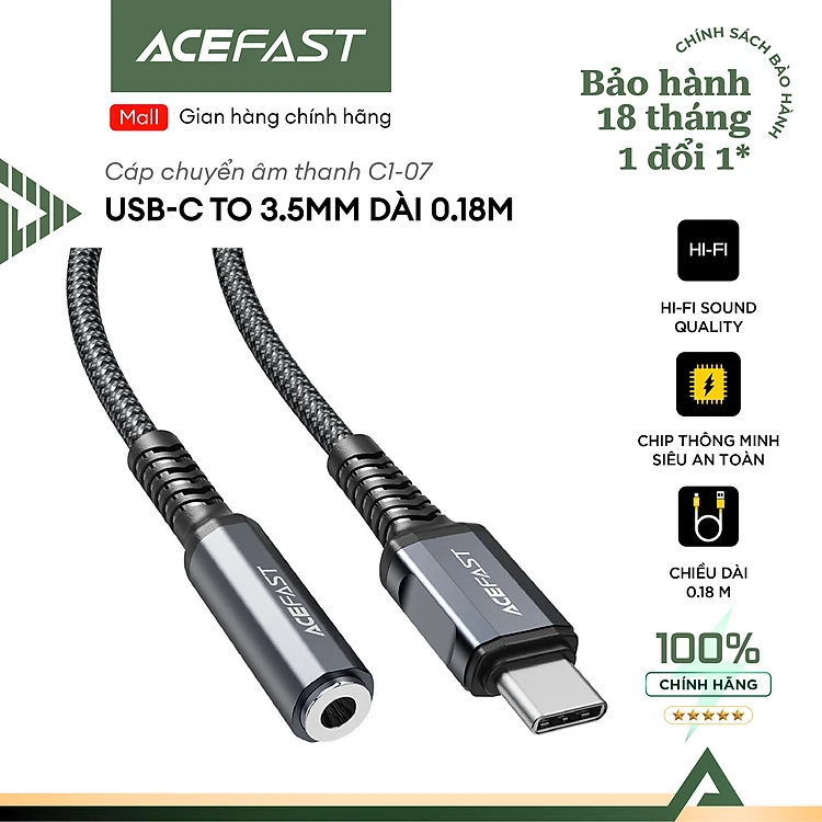 Cáp chuyển âm thanh Acefast USB-C to 3.5mm (0.18m) - C1-07 Hàng chính hãng Acefast
