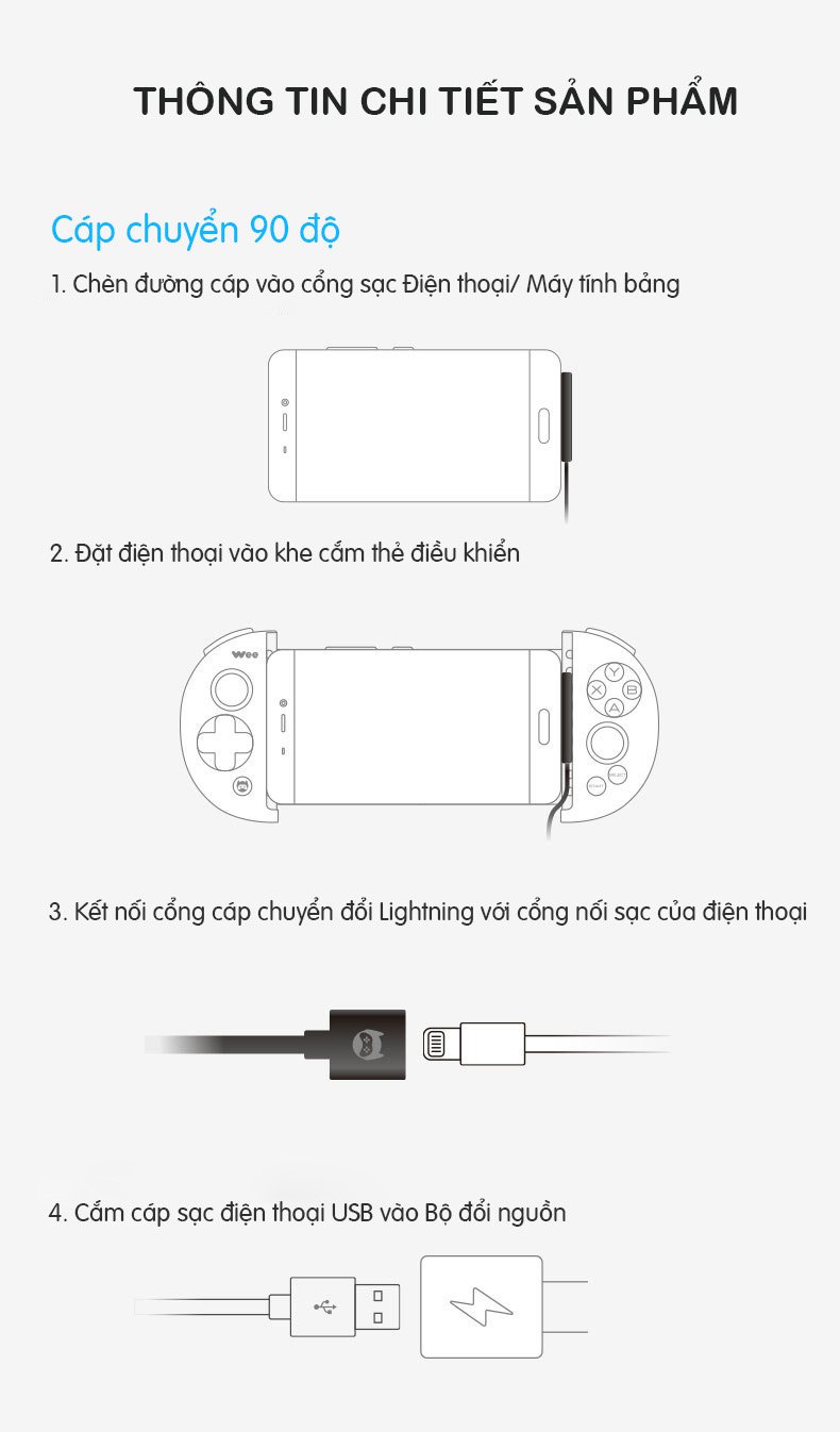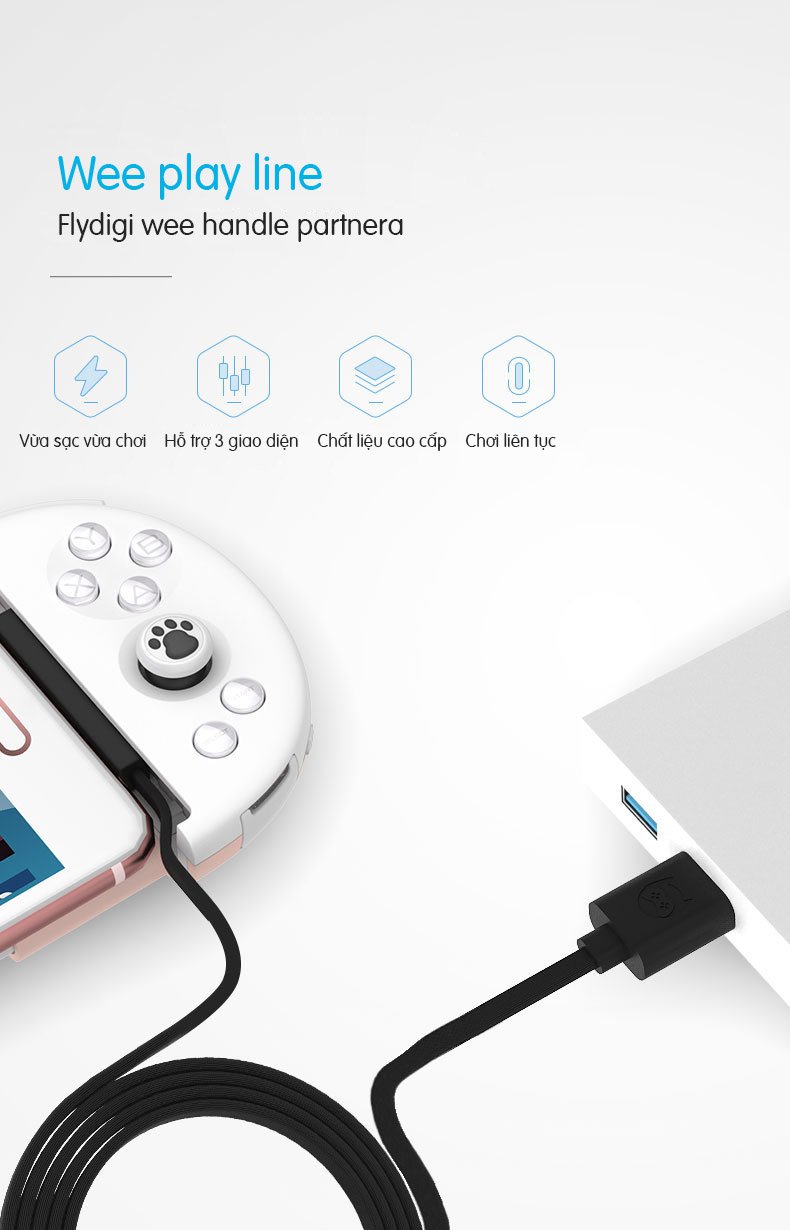 Với tính năng vừa sạc vừa chơi, hỗ trợ 3 giao diện sạc ( Cổng Type C, Micro USB, Lightning), chất liệu chơi cao cấp cùng khả năng chơi liên tục bảo vệ bộ nguồn cùng pin chính là những điểm mạnh của Cáp chuyển đổi góc 90 độ chơi game cho Flydigi Wee 2T, T6, Wee 2, Q1, X8 Pro Flydigi Weekend.