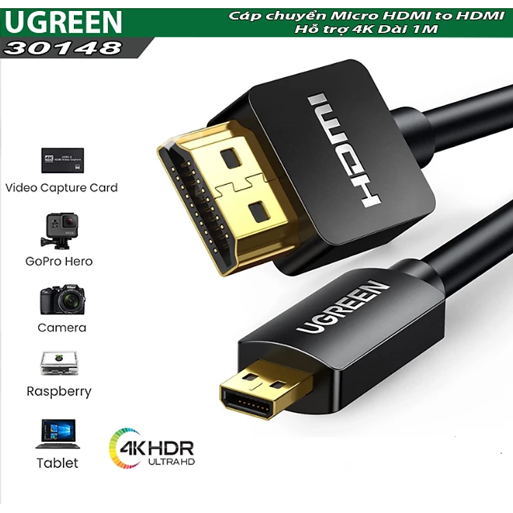 Cáp chuyển đổi mini HDMI sang HDMI 1.4 full HD dài 1m màu đen UGREEN 30148Hd108 Hàng chính hãng