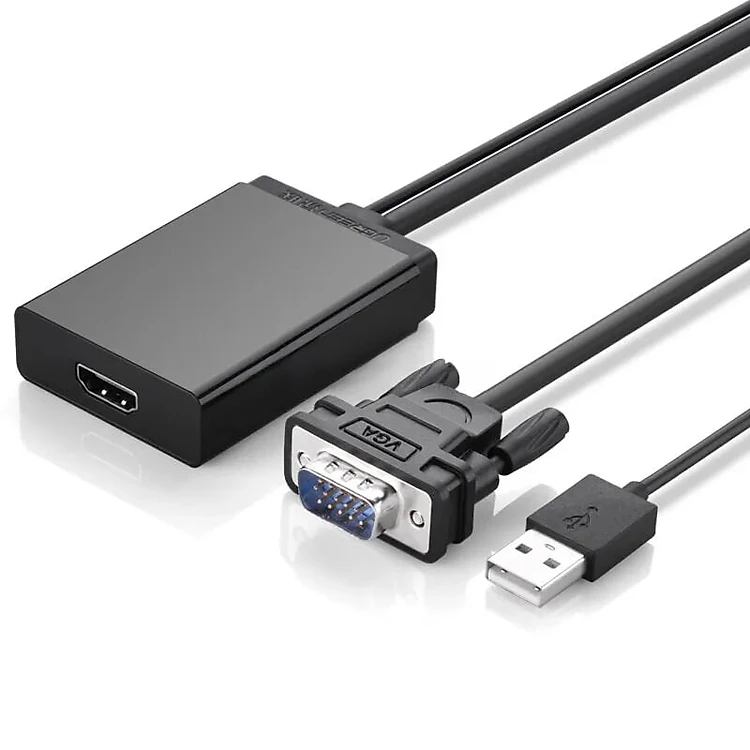 Cáp chuyển VGA ra HDMI tích hợp Audio cao cấp dài 50CM có nguồn phụ Màu Đen Ugreen GK40213MM106 Hàng chính hãng