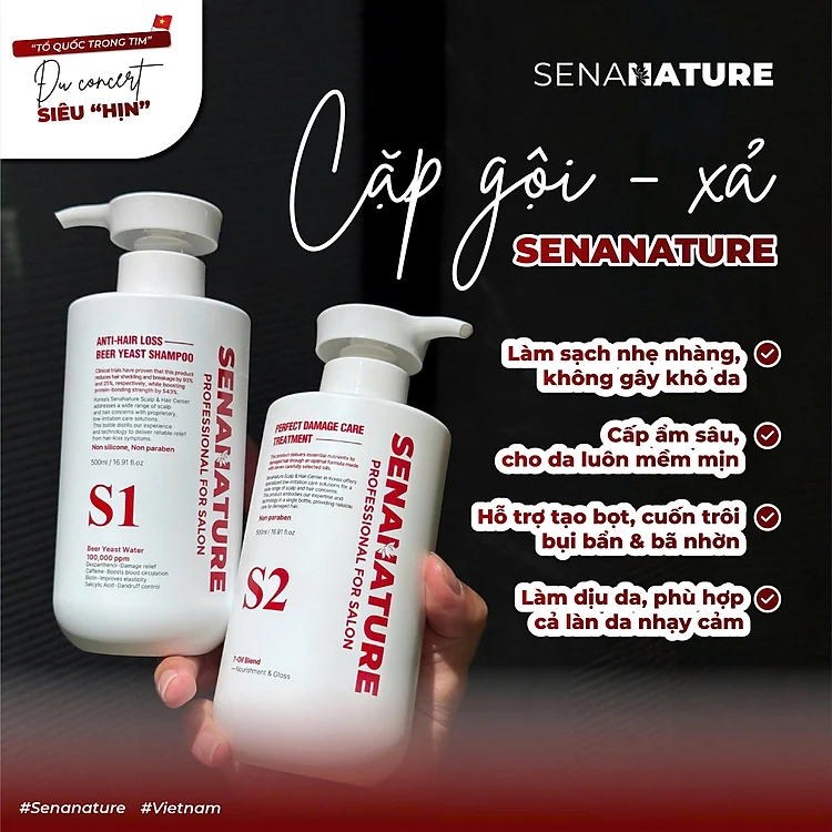 (Tặng sửa rửa mặt) Cặp dầu gội xả SENANATURE ANTI-HAIR LOSS BEER YEAST SHAMPOO + SENANATURE PERFECT DAMAGE CARE TREATMENT 1000ml