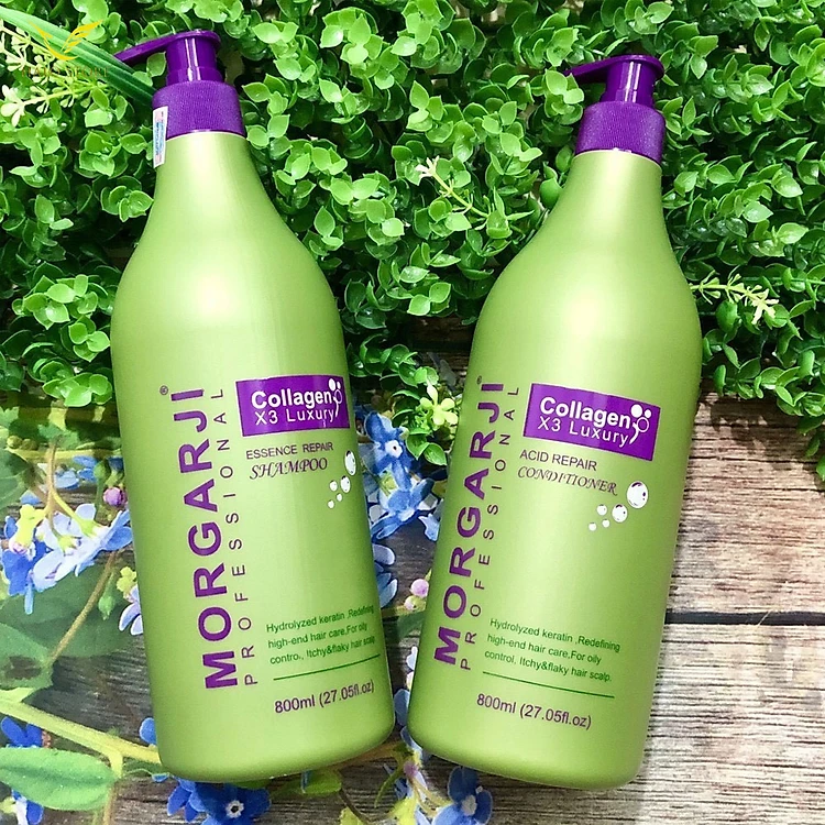 Cặp Dầu Gội Xả X3 Collagen Morgarji 800ML Phục hồi Tóc Chuyên Sâu, Dầu Dừa Giúp Kiềm Dầu Giảm Bết