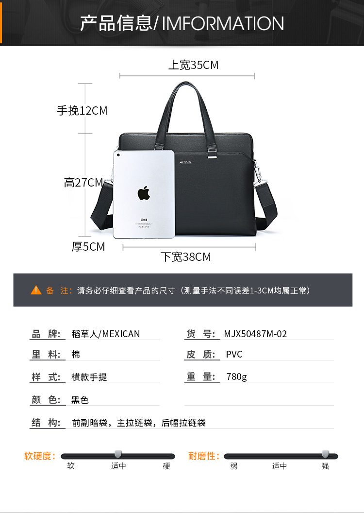 Scarecrow (MEXICAN) Briefcase Fashion Men Bags Casual Business Bag Large Capacity Cross Bags 50487 Black