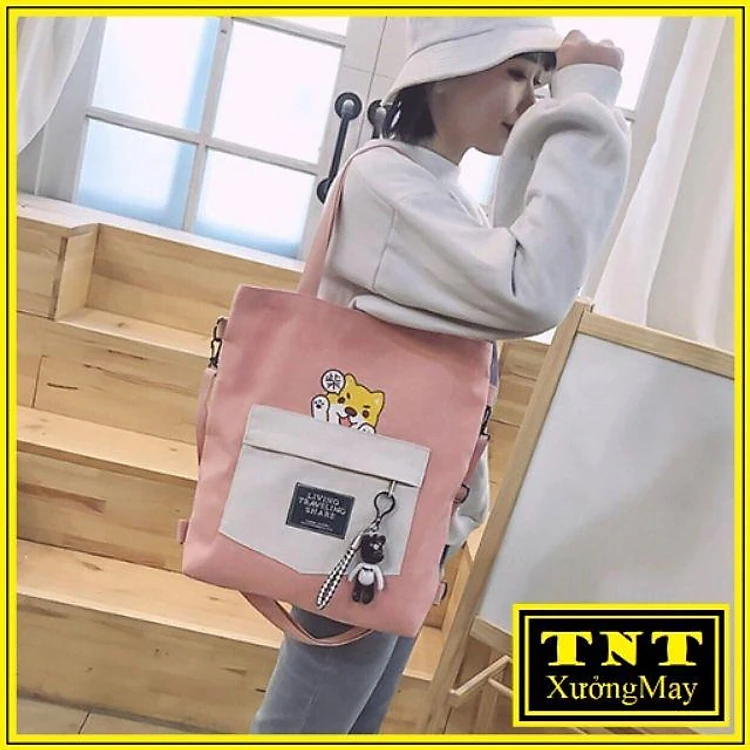 Cặp đi học tặng móc khoá bông siêu dễ thương