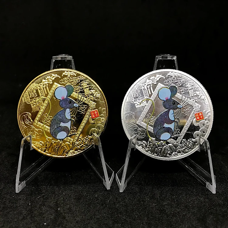 Cặp đồng xu hình con chuột bao gồm 1 xu bạc và 1 xu vàng được ốp riêng mỗi xu và đựng trong hộp quà tặng