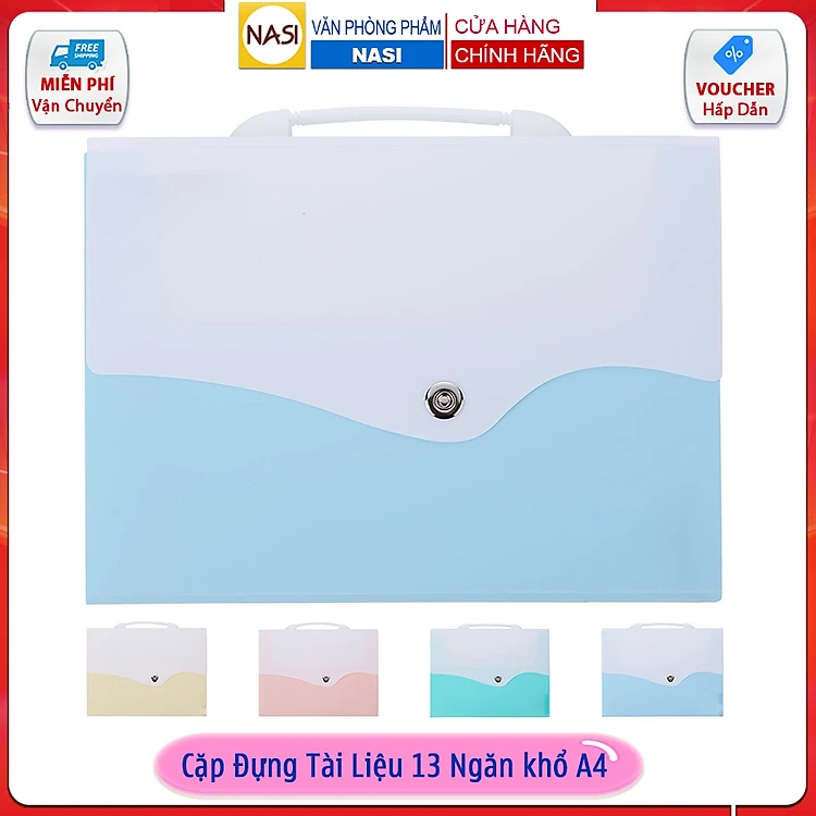 Cặp Đựng Tài Liệu Văn Phòng Phẩm NASI TL1002 nhiều ngăn khổ A4 13 ngăn phân trang tiện lợi tập file đựng lưu trữ hồ sơ văn phòng học sinh sinh viên túi đựng tài liệu nhựa PP cao cấp