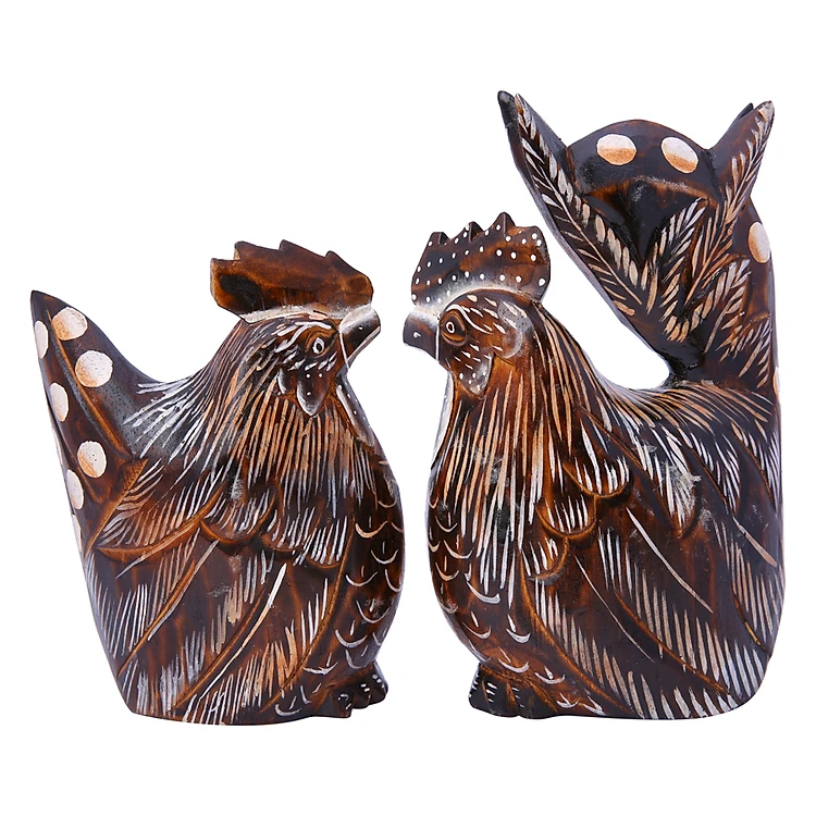 - Cặp Gà Gỗ Đan Như có kiểu dáng ngộ nghĩnh, đáng yêu, màu sắc sinh động, bắt mắt.