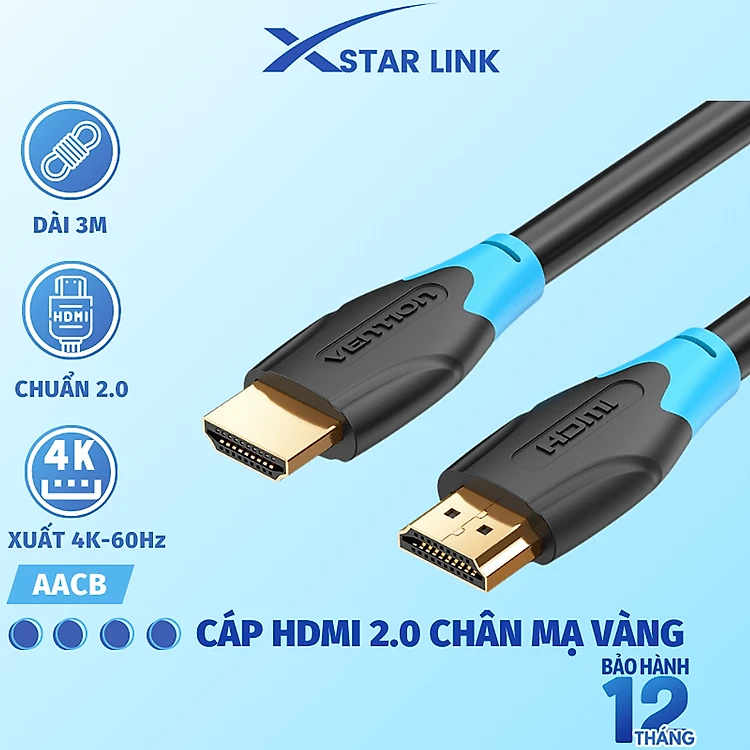 Cáp HDMI chuẩn 2.0 chất lượng 4K 60Hz Vention dây cáp HDMI tốc độ cao chuyên dụng dành cho 1080P 3D TV LCD/màn hình máy chiếu PS4/Xbox/Máy tính/Laptop - Hàng chính hãng