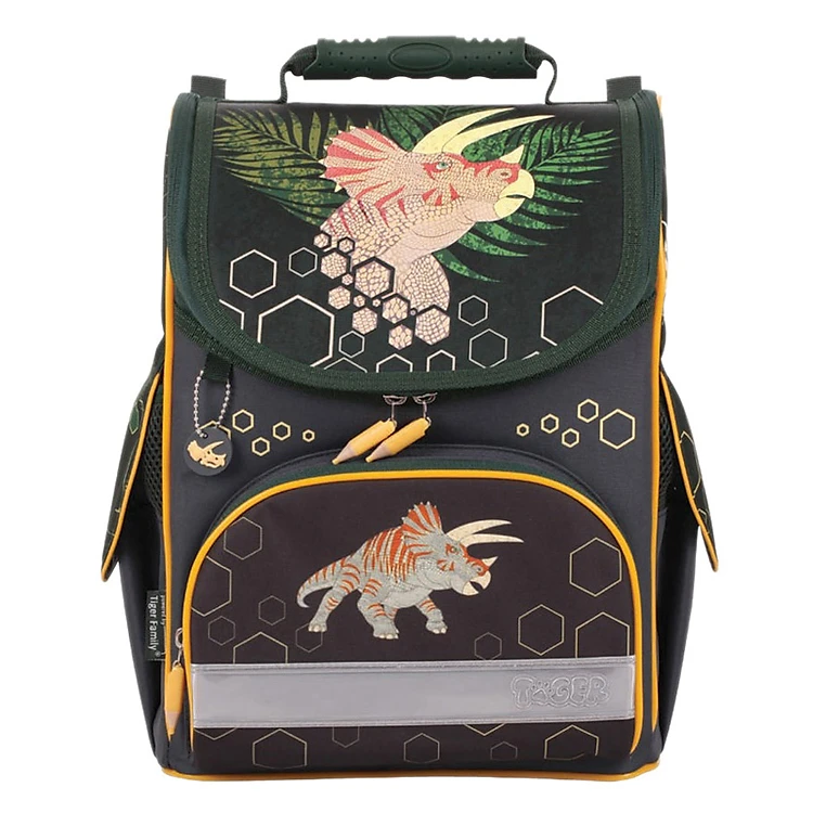 Cặp Học Sinh Siêu Nhẹ Chống Gù Lưng Và Lệch Vai Tiger Family 1728B Hình Khủng Long (Trên 6 Tuổi) có trọng lượng siêu nhẹ đạt chuẩn quốc tế, cùng đệm lưng bằng lưới và nhiều lớp mút, giảm thiểu tình trạng đau nhức, giúp bé thoải mái khi mang. Sản phẩm có màu xanh đen cùng hình khủng long được in đẹp mắt, giúp các bé trai thể hiện cá tính, khiến bé thích thú hơn khi sử dụng. Đây là một trong những lựa chọn lý tưởng dành cho các mẹ khi có con bước vào bậc tiểu học bởi thiết kế cùng những tính năng nổi bật.