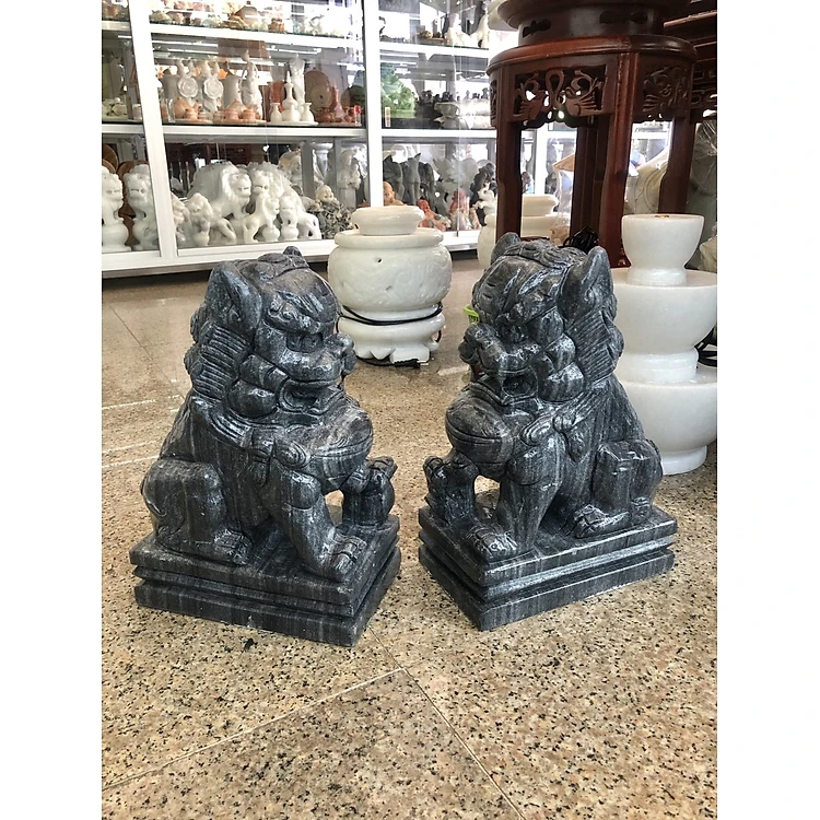 Cặp Kỳ Lân phong thủy đá cẩm thạch vân đen - Cao 30 cm
