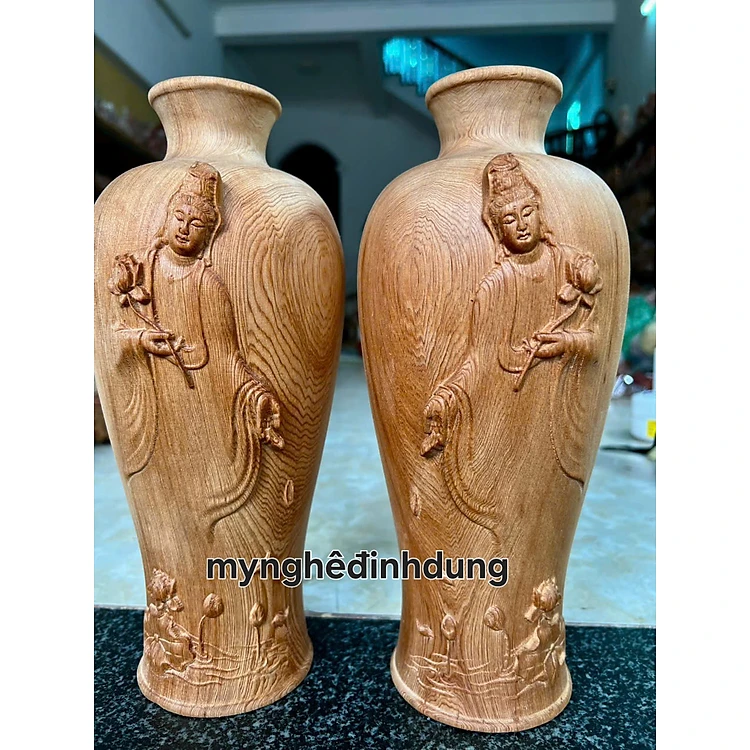 Cặp lục bình phong thủy cầu tài lộc bằng gỗ ngọc Am thơm nức cao 30cm