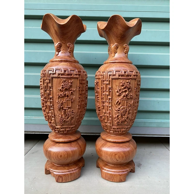 Cặp lục bình trạm khắc tứ quý ,phong thủy hút tài lộc bằng gỗ hương đá kt