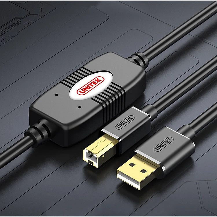 Cáp Máy In Đầu Mạ Vàng Unitek U205B Có 2 Chíp Khuếch Đại Tín Hiệu Dài 15m - Hàng Chính Hãng