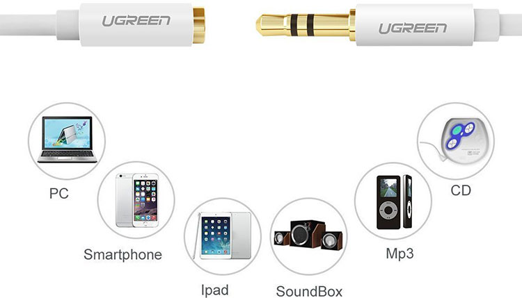 - Cáp Nối Dài Ugreen 3.5mm 10746 (0.5m) dùng nối dài cáp âm thanh từ chân 3.5mm dương sang chân 3.5mm âm, cáp chất lương cao cho âm thanh trung thực nhất.