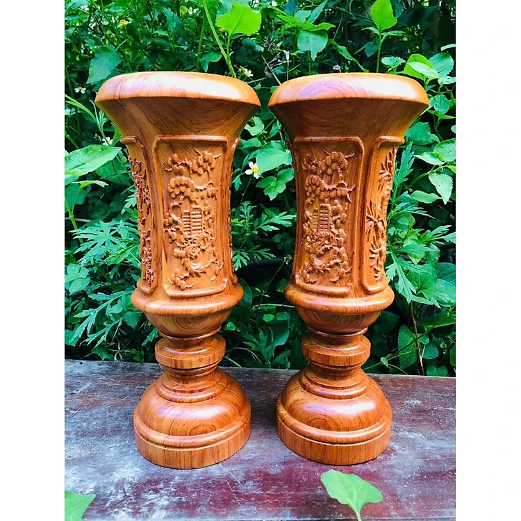 Cặp ống cắm nhan cắm hương bằng gỗ hương đá khắc tứ quý kt cao 30×11×9cm