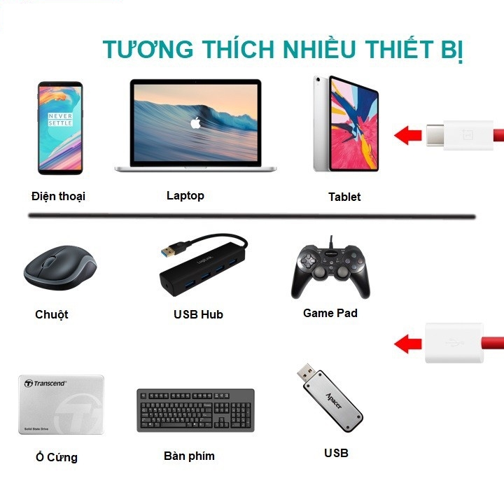 Cáp OTG chuyển đổi Type C sang cổng USB 3.0 giúp kết nối ổ đĩa flash, bàn phím, chuột, hoặc các thiết bị hỗ trợ tiêu chuẩn USB-A với một thiết bị USB-C như Điện thoại, Máy tính bảng, Laptop ó hỗ trợ chức năng OTG.
