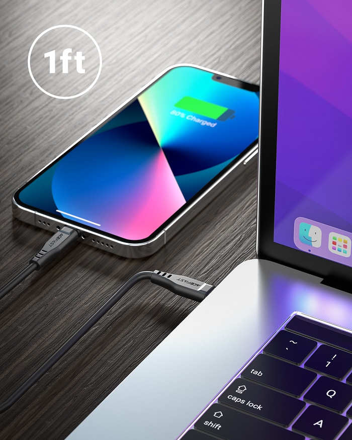 Cáp Sạc Acefast USB Type-C to Lightning 0.3m DC3-01 với tốc độ sạc tối đa lên đến 3A