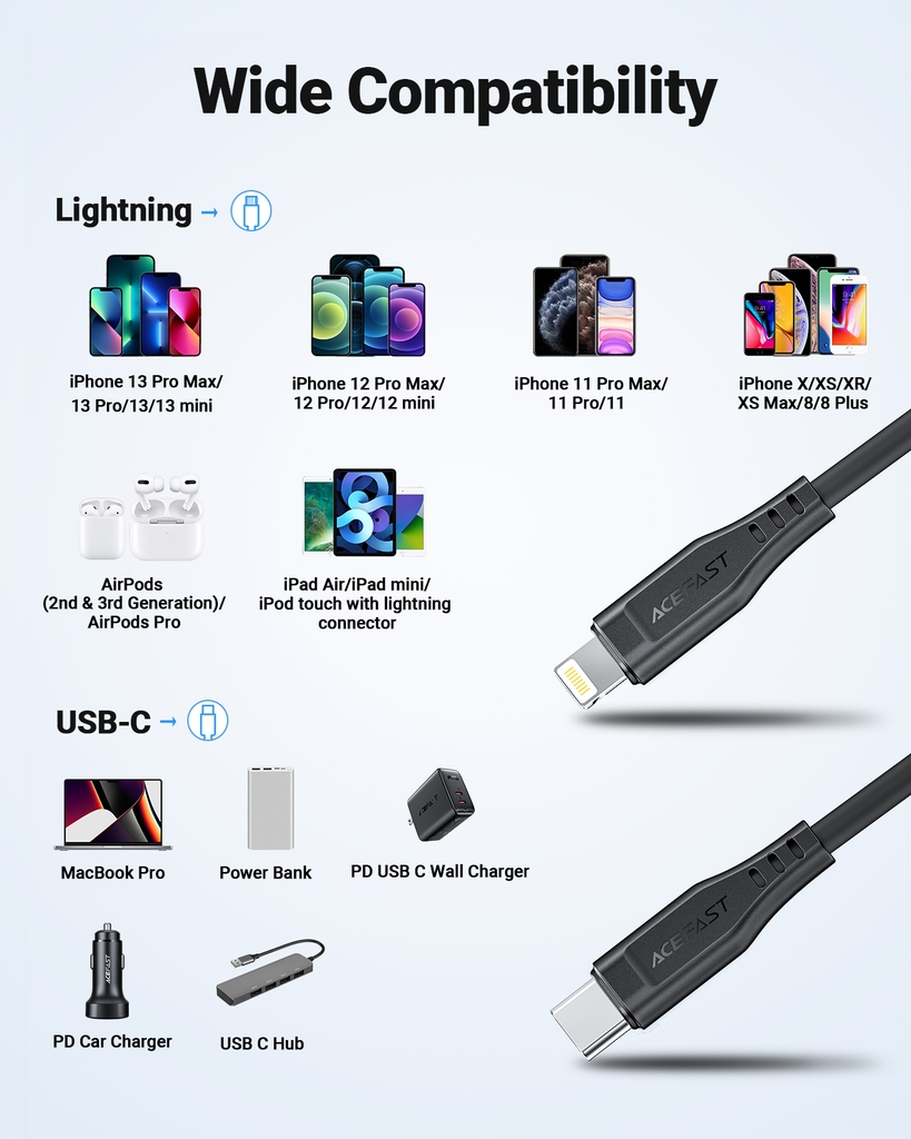 Cáp Sạc Acefast USB Type-C to Lightning 0.3m DC3-01 - Hàng Chính Hãng