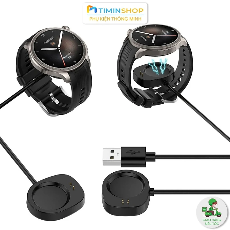 Cáp sạc cho Amazfit Balance/ Balance 2/ Active 3 Premium/ Active Max/ T-Rex 3/ 3 Pro/ Ultra 2 - Đế + dây sạc dài 1m (CBA)